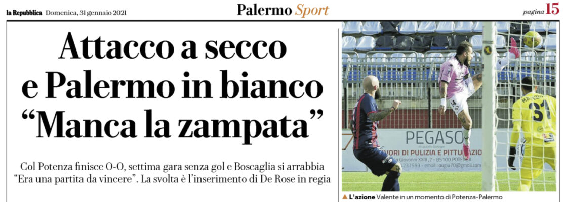 Repubblica: “Attacco a secco e Palermo in bianco «Manca la zampata». Col Potenza finisce 0-0, settima gara senza gol”