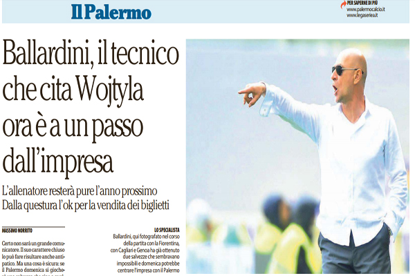 Repubblica: “Ballardini, il tecnico che cita Wojtyla ora è a un passo dall’impresa. Di Marzio scelta vincente…”