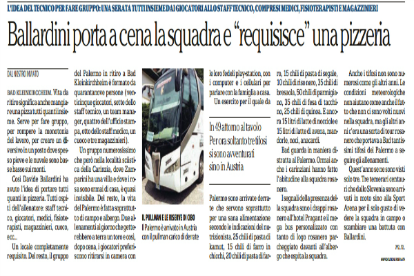 Repubblica: “Ballardini porta a cena la squadra e “requisisce” una pizzeria. Ecco cosa mangiano i rosanero in ritiro”