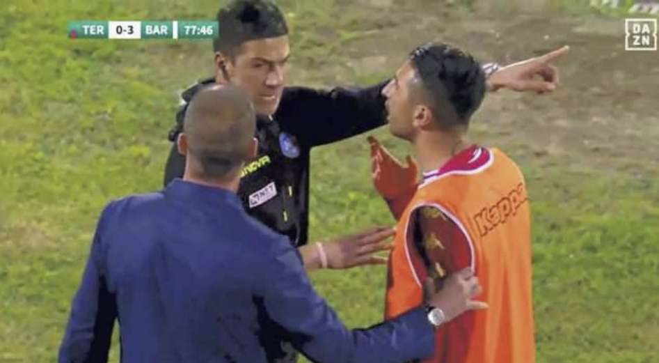 L’episodio è avvenuto al 78esimo minuto di gioco del match del Liberati, quando con i biancorossi già in vantaggio per 3 reti a 0 e dunque con una solida ipoteca sulla salvezza, Bellomo si è messo a litigare con un raccattapalle e con la terna arbitrale, finendo anzi tempo negli spogliatoi. Non una novità per il centrocampista barese, che già in occasione della gara di Cosenza, aveva rimediato un’espulsione , ma quella volta tre minuti dopo il suo ingresso in campo, per avere preso per il collo il centrocampista avversario Calò e per questo venne squalificato per due giornate.