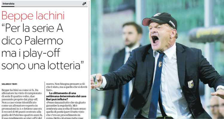 Repubblica: “Beppe Iachini: «Per la serie A dico Palermo ma i play-off sono una lotteria»”