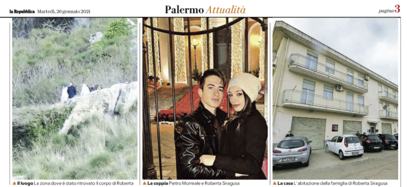 L’edizione odierna de “La Repubblica” si sofferma sulla tragica scomparsa di Roberta Siragusa.