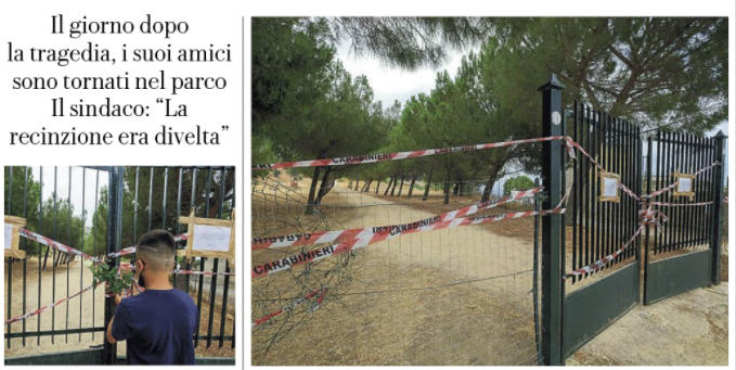 Repubblica: “Carini. Dolore e rabbia per Gabriele «Quel campetto chiuso doveva essere sorvegliato»”