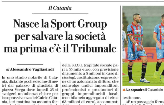 Repubblica: “Catania. Nasce la Sport Group per salvare la società ma prima c’è il Tribunale”