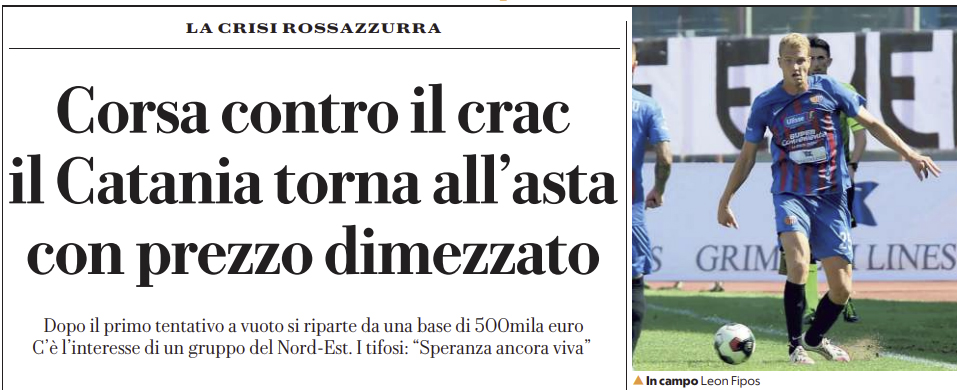 L’edizione odierna de “La Repubblica” si sofferma sulla situazione del Catania con la proroga dell’esercizio provvisorio.