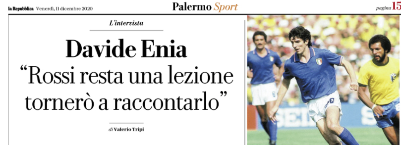 L’edizione odierna de “La Repubblica” riporta le dichiarazioni di Davide Enia, attore-scrittore palermitano che ha raccontato le gesta di Paolo Rossi nel suo “Italia-Brasile 3-“