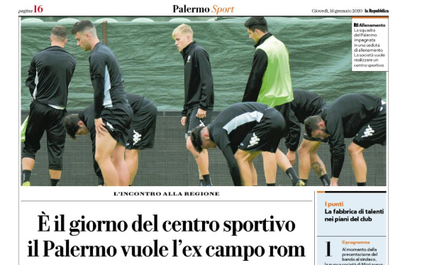 “È il giorno del centro sportivo, il Palermo vuole l’ex campo rom.”