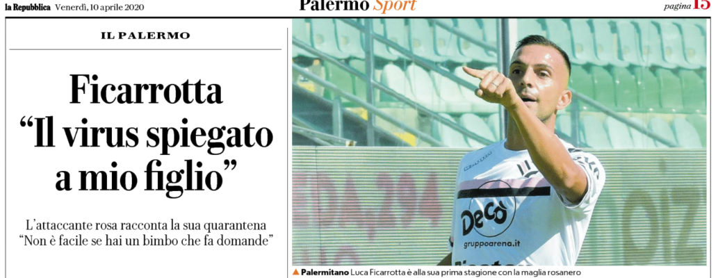 Repubblica: “Ficarrotta: «Il virus spiegato a mio figlio». L’attaccante rosa racconta la sua quarantena”