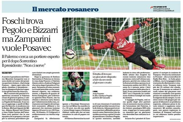 Repubblica: “Foschi trova Pegolo e Bizzarri, ma Zamparini vuole Posavec”