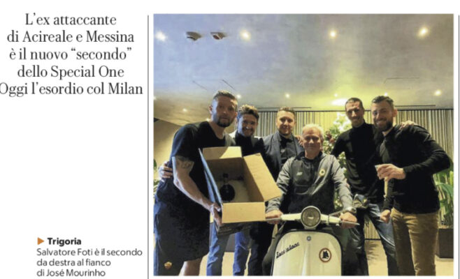 Per lui, adesso, si è spalancato un enorme portone. Foti questo pomeriggio, alle 18.30, farà il suo esordio sulla panchina della Roma, al fianco dello “ Special One”, a San Siro, contro il Milan. Una gara da ex per Foti, che con Giampaolo ha già lavorato con i rossoneri. Una bella sfida per il giovane tecnico siciliano, pronto a far vibrare il cuore della Sicilia anche nella Capitale.