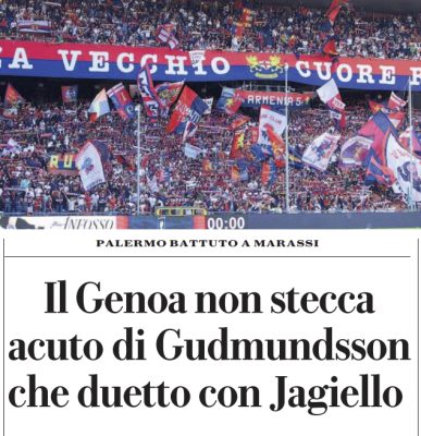 Repubblica Genova: “Palermo battuto. Il Genoa non stecca acuto di Gudmundsson che duetto con Jagiello”