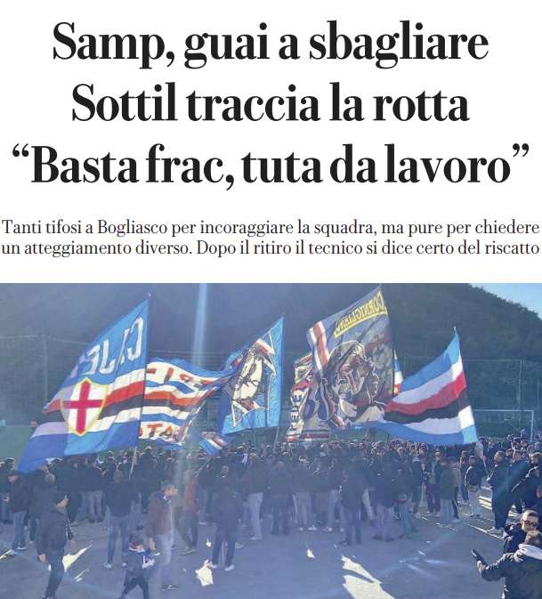 Repubblica Genova: “Samp, guai a sbagliare. Sottil traccia la rotta: «Basta frac, tuta da lavoro»”