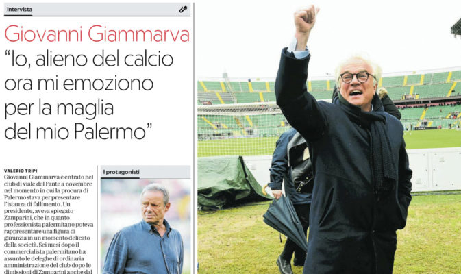 L’edizione odierna de “La Repubblica” ha pubblicato una lunga intervista realizzata al presidente del Palermo Giovanni Giammarva. Ecco le sue parole: