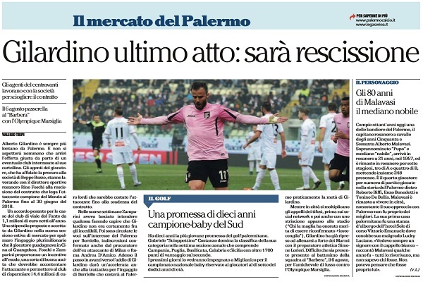“Alberto Gilardino è sempre più lontano da Palermo. E non si aspetterà nemmeno che arrivi l’offerta giusta da parte di un eventuale club interessato al suo cartellino. Gli agenti del giocatore, che ha affidato la procura alla società di Beppe Bozzo, stanno lavorando con il direttore sportivo rosanero Rino Foschi alla rescissione del contratto che lega l’attaccante campione del Mondo al Palermo fino al 30 giugno del 2018. Un accordo pesante per le casse del club di viale del Fante da 1,1 milioni di euro netti all’anno. Uno stipendio proposto e accettato da Gilardino nella scorsa sessione estiva di mercato per spalmare l’ingaggio plurimilionario che il giocatore guadagnava in Cina al Guangzhou. Foschi e Zamparini proporranno un incentivo all’esodo, una sorta di buona uscita che dovrebbe accontentare l’attaccante e permettere al club di risparmiare i 4,4 milioni di euro lordi che sarebbe costato l’attaccante fino alla scadenza del contratto. Nelle scorse settimane Zamparini aveva lasciato intendere qualcosa facendo capire che Gilardino non era certamente fra gli incedibili. Poi sono circolate le voci sull’interesse del Palermo per Borriello, indiscrezioni confermate anche dal procuratore dell’ex attaccante di Milan e Roma Andrea D’Amico. Adesso il passo in avanti verso l’addio di Gilardino darà un’accelerata anche alla trattativa per l’ingaggio di Borriello che costerà al Palermo praticamente la metà di Gilardino. Mentre in città si moltiplicano gli appelli dei tifosi, prima sui social network e poi anche con uno striscione apparso allo stadio (“Chi la maglia ha onorato merita di essere riconfermato #iostocongila”), Gilardino ha già ripreso ad allenarsi a forte dei Marmi con il preparatore atletico Simone Lorieri. Difficile che sia presente presente al battesimo della squadra al “Barbera”, il 6 agosto, per l’amichevole di lusso contro l’Olympique Marsiglia”. Questo quanto si legge sull’edizione odierna de “La Repubblica”.
