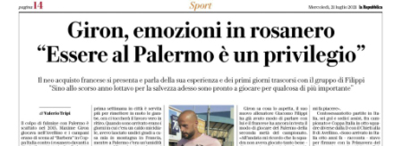 Repubblica: “Giron, emozioni in rosanero: «Essere al Palermo è un privilegio»”