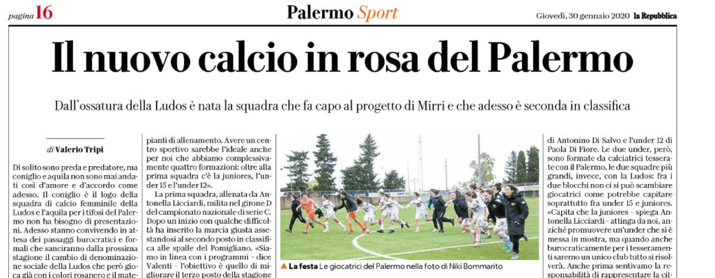 Repubblica: “Il nuovo calcio in rosa del Palermo. Licciardi: «Adesso nuovi stimoli»”
