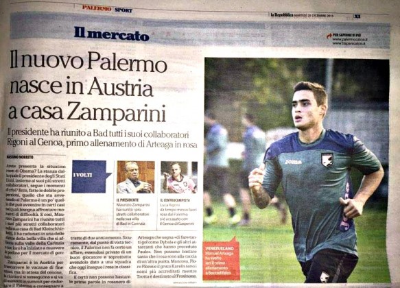 “Avete presente la situation room di Obama? La stanza dalla quale il presidente degli USA insieme ai suoi più stretti collaboratori segue i momenti di crisi? Ecco fatte le debite proporzioni, quello che sta avvenendo al Palermo è un po’ quello che può avvenire in certi casi nei quali bisogna affrontare momenti di difficoltà. E’ così, Maurizio Zamparini ha riunito tutti i suoi più stretti collaboratori a Bad Kleinchhikeim, li ha radunati in una delle stanze della villa che si affaccia sulla valle della Carinzia e con loro ha iniziato a muovere le pedine per il mercato di gennaio. Zamparini è in Austria per trascorrere le vacanze di fine anni, ma in attesa del cenone le riunioni si susseguono e si va di summit in summit per rinforzare il Palermo e consegnare a Daviide Ballardini una squadra più competitiva di quella che il tecnico ha lasciato il 22 dicembre. A casa Zamparini a Bad oltre al presidente e ai suoi collaboratori come ospiti fissi ci sono l’executive manager Baiguera, il ds Gerolin, con loro attesi anche alcuni operatori di mercato. Probabilmente una capatina la farà anche Rino Foschi che da tempo lavora per il Palermo in attesa che venga ufficializzato il suo ritorno. Certo è che da queste riunioni che andranno avanti fino a fine settimana ne verrà fuori il nuovo Palermo […]”. Questo quanto si legge sull’edizione odierna de “La Repubblica”.