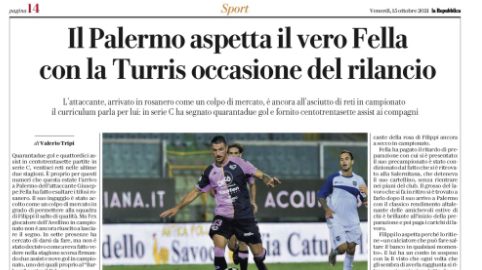 Repubblica: “Il Palermo aspetta il vero Fella, con la Turris occasione del rilancio”