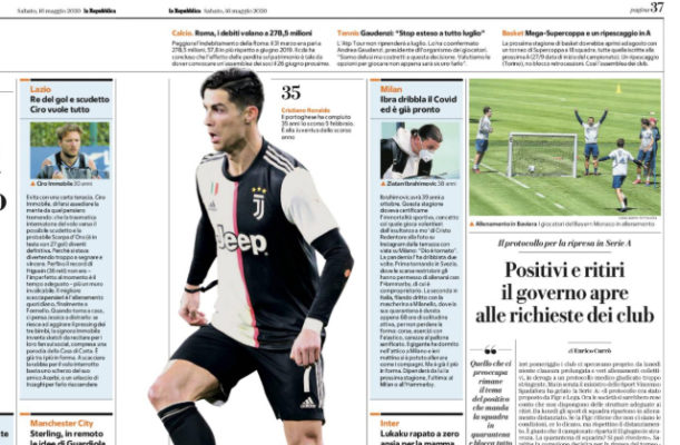 Repubblica: “Il protocollo per la ripresa in Serie A. Positivi e ritiri il governo apre alle richieste dei club”