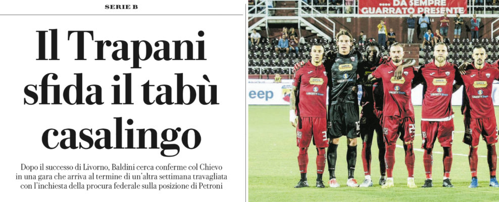 L’edizione odierna de “La Repubblica” si sofferma sulla situazione del Trapani, atteso dalla sfida contro il Chievo. «Siamo pronti a dimostrare che il fatto non sussiste e saremo in grado di documentarlo. Abbiamo tutti i mezzi per dimostrare — spiega il direttore generale Giuseppe Mangiarano — l’infondatezza dei rilievi che vengono mossi a nostro carico sulla questione della presunta doppia proprietà di Fabio Petroni. Tutto questo, però, dispiace molto per i nostri tifosi. Ci dobbiamo sempre difendere e per i nostri sostenitori non è certamente una bella cosa. Vorremmo raccontare alla nostra gente ben altro». È una benedizione che domani ( ore 15, diretta su Dazn) arrivi il Chievo, dovendo provare a dar seguito alla salutare vittoria di otto giorni fa, ottenuta a Livorno. Se oggi il Trapani non è ultimo da solo ed è ancora agganciato al treno- salvezza (a 4 punti dai play-out e 6 dalla permanenza diretta), lo deve al sul rendimento esterno ( 2 vittorie, un pareggio e 4 sconfitte), che gli ha consentito di ottenere 7 dei 10 punti conquistati. «Ho visto grande maturità dei nostri tifosi — prosegue Mangiarano — e sono tutti a sostegno della squadra. Abbiamo pagato un po’ di inesperienza e sono sicuro che invertiremo la tendenza. Dobbiamo essere chiari, le nostre partite sono due: quella con i conti e quella in campo. Per questa ragione, anche salvarci all’ultima giornata sarebbe un gran risultato. La vittoria a Livorno ha riportato entusiasmo e ci ha fatto lavorare con maggiore serenità».