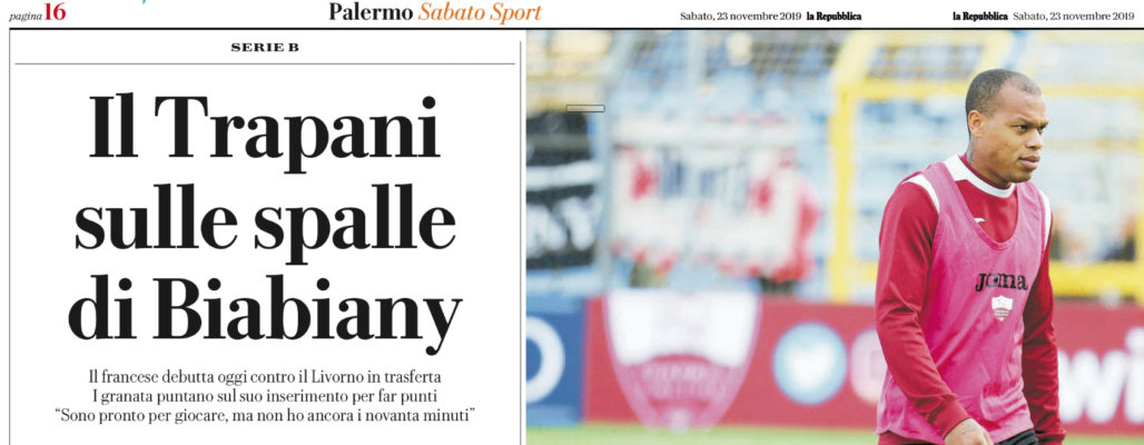 L’edizione odierna de “La Repubblica” si sofferma sul momento del Trapani. È poggiata tutta sulle spalle di Biabiany la speranza di risalire la china e creare un’inversione di tendenza ad una stagione fin qui deludente. Nember non è intenzionato ad alcun cambio di allenatore, lo sforzo economico sarà proiettato solo sugli svincolati. È probabile che Biabiany possa ricoprire la posizione di esterno destro offensivo nel 4- 3- 3, per provare a dare consistenza ad una manovra che fino a oggi si è dimostrata (tranne rare eccezioni) poco incisiva. Di sicuro, da oggi, il Trapani ha necessità di un cambio di marcia. Troppo pochi 7 punti in 12 partite. Con una vittoria il Trapani agguanterebbe proprio i toscani, abbandonando lo scomodissimo ultimo posto solitario che occupa. Non ha convinto il difensore norvegese Strandberg, ex Krasnodar. Mercoledì dall’Argentina arriva Fausto Grillo. Per lui la firma pare molto vicina.