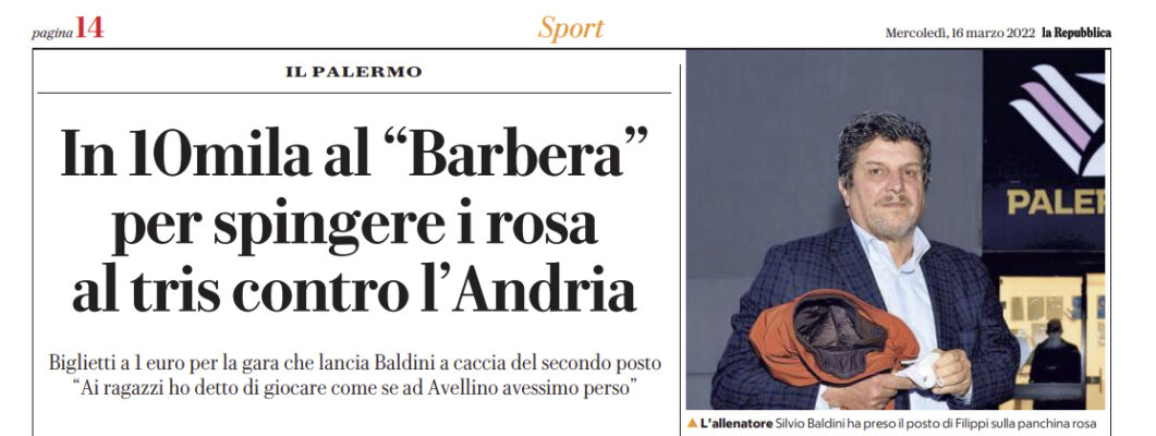 L’edizione odierna de “La Repubblica” si sofferma sulla spinta del Barbera in vista della gara contro la Fidelis Andria, che vedrà circa 10mila tifosi allo stadio.