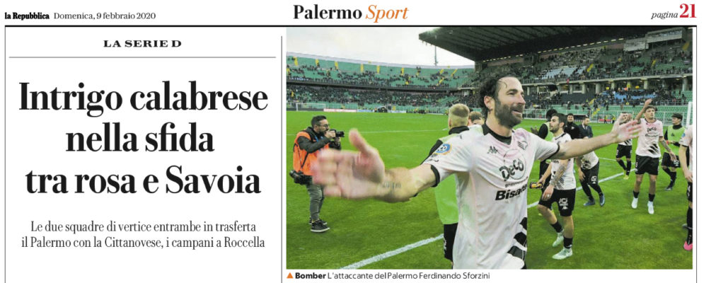 L’edizione odierna di “Repubblica” parla di Palermo e Savoia, oggi entrambe in Calabria. A una quarantina di chilometri l’una dall’altra – si legge -. Ma sfalsate di mezzora. La sfida a distanza fra Palermo e Savoia continua oggi in Calabria dove i rosanero affronteranno la Cittanovese e i campani il Roccella. La squadra di Rosario Pergolizzi scenderà in campo alle 15, mentre quella di Carmine Parlato alle 14,30. Le parti, dopo le lamentele del Palermo per le partite del Savoia sempre posticipate rispetto all’orario fissato dalla Lega nazionale dilettanti, questa volta si sono capovolte e dalla parte campana non hanno perso l’occasione per farlo notare. Gli allenatori delle due squadre, però, almeno davanti a taccuini e microfoni, badano più alle cose di campo. I rosanero iniziano a recuperare i giocatori che nelle ultime giornate hanno marcato visita, come Masimiliano Doda e Giovanni Ricciardo assenti oggi, ma che torneranno domani in gruppo, e Francesco Vaccaro e Alessandro Martinelli che sono stati assenti per squalifica. I bianchi, invece, devono fare i conti con le squalifiche di Angelo Scalzone e Ciro Poziello, due dei perni attorno a cui ha girato a mille la squadra campana. Pergolizzi chiede ai suoi giocatori il salto di qualità definitivo dopo la vittoria nel derby contro l’Fc Messina. Il modo in cui in sala stampa ha lanciato l’allarme sui momenti difficili che ancora a suo dire dovranno arrivare, fa capire che per i rosanero si sta aprendo una nuova fase, quella in cui il traguardo inizia a essere a un passo, e che il tecnico ha fatto esperienza del calo di risultati sul finire del 2019 dopo che la sua squadra aveva raggiunto il massimo vantaggio. Pergolizzi non vuole che l’entusiasmo del dopo derby per una vittoria ottenuta contro una squadra che si è rafforzata quasi al livello delle due battistrada e il fatto di avere mantenuto i cinque punti di vantaggio possa avere un effetto rilassante sui suoi calciatori. Non a caso Pergolizzi ha parlato di atteggiamento mentale e non di aspetto tecnico. Parlato, dal canto suo, fa buon viso a cattivo gioco sottolineando la forza del suo gruppo duttile e affiatato.