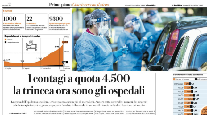 Repubblica: “Italia. I contagi a quota 4.500 la trincea ora sono gli ospedali”