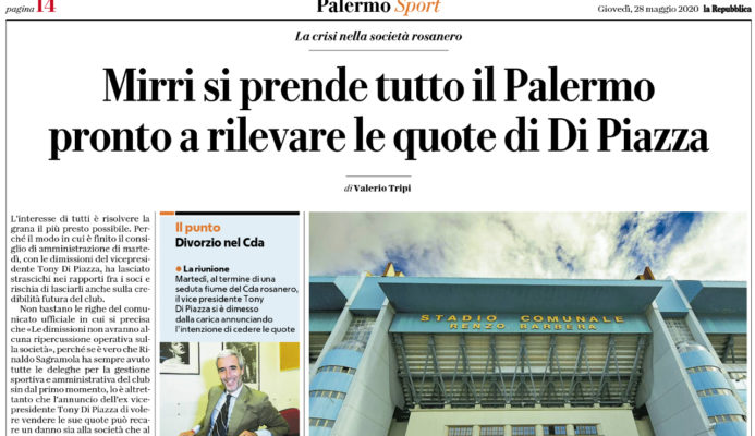 “Mirri si prende tutto il Palermo, pronto a rilevare le quote di Di Piazza”