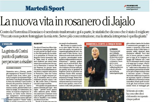 “Per alcuni il bosniaco Mato Jajalo nella sua nazionale gioca bene solo perché ha Pjanic accanto. Per altri quello che ha calciato la punizione di Firenze era Eugenio Corini travestito Jajalo. Dopo mesi di critiche nei suoi confronti per alcuni deve essere dura ammettere che contro la Fiorentina il numero 28 del Palermo ha giocato bene. C’è anche chi ha sottolineato come riesca a segnare solo contro la Fiorentina, visto che l’unico suo gol in maglia rosanero prima di domenica sera lo aveva realizzato proprio contro i viola. Ma anche allora il Palermo uscì dal campo sconfitto. «Per questo non posso dire di essere contento per il gol – dice Jajalo – perché anche questa volta abbiamo perso. Dobbiamo continuare a lavorare come e più di prima, perché siamo ultimi in classifica e non dobbiamo dimenticarcelo». Parole da leader per uno che agli occhi dei tifosi un vero e proprio trascinatore non lo è mai stato. A Palermo è arrivato a gennaio del 2015 ritrovando Beppe Iachini, suo allenatore ai tempi della prima esperienza in Italia a Siena nel 2009-10. È sempre passato per un mediano recupera palloni, uno che non ha le caratteristiche di regista e in effetti anche nel Palermo non ha quasi mai ricoperto quel ruolo. In realtà le sue schede tecniche parlano di un calciatore in grado di costruire l’azione e che addirittura in Germania nei quattro anni trascorsi al Colonia, ha fatto anche il trequartista. A Palermo però l’accusa principale che gli hanno mosso i suoi detrattori è sempre stata quella di non sapere fare un passaggio più lungo di tre metri e in orizzontale. Ma Firenze in campo è andato un altro Jajalo. Uno che, numeri alla mano, non solo ha recuperato più palloni di tutti, cinque come il viola Vecino, ma è entrato in molte delle azioni della partita, prendendosi anche qualche responsabilità come testimoniano i quattro palloni persi, uno in meno di Ilicic, Bernardeschi e Babacar. Se quella che è iniziata a Firenze nella prima partita sotto la gestione di Eugenio Corini in panchina sia davvero l’inizio della seconda vita di Jajalo in rosanero lo dirà solamente il tempo. Resta il fatto che in Toscana il croato naturalizzato bosniaco è stato in grado di unire qualità, come in occasione della bella punizione a giro calciata i porta che ha dato il momentaneo pareggio ai rosanero, e quantità, come testimoniano anche il fallo fatto e i quattro subiti riportati dalle statistiche ufficiali. Tutti dati che lo hanno portato a essere per la Lega di A il migliore in campo del Palermo con i suoi 10,74 chilometri corsi in lungo e in largo per il campo. «Peccato per la beffa finale – dice Jajalo – nella nostra situazione non ci possiamo permettere di subire un gol a tempo scaduto come è successo ancora a Firenze. Avevamo raddrizzato la partita ed eravamo riusciti a mettere in difficoltà la Fiorentina senza concedere chissà quali occasioni da gol. Anzi eravamo anche andati vicini al vantaggio prima della loro rete. E invece su palla da fermo ancora una volta ci siamo lasciati sorprendere. Significa che dobbiamo tenere la concentrazione ancora più alta di quanto non facciamo. Dobbiamo capire che questa è la strada giusta per invertire la tendenza». Resta da capire cosa sia successo nella testa di Jajalo, e, va sottolineato, anche dei suoi compagni, rispetto alla partita giocata sette giorni prima contro la Lazio. La scintilla c’è già stata, il motore deve solo entrare a regime e chissà che a guidare la squadra non possa esserci proprio Jajalo, professione regista, per tutti mediano”. Questo quanto riportato dall’edizione odierna de “La Repubblica”.