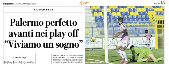 Repubblica: “La partita. Palermo perfetto, avanti nei play off «Viviamo un sogno»”