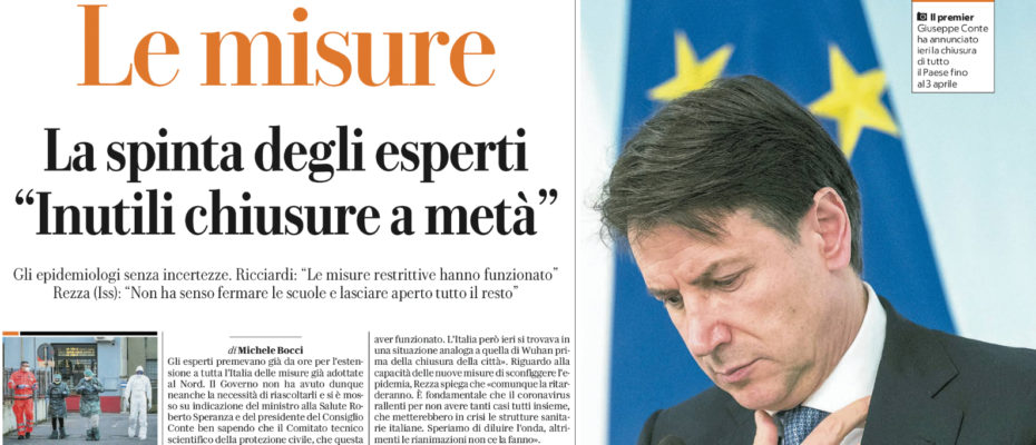 Repubblica: “La paura del contagio e le misure. La spinta degli esperti «Inutili chiusure a metà». Ecco cosa c’è dietro la scelta del Premier”