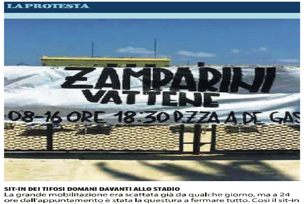 “La grande mobilitazione era scattata già da qualche giorno, ma a 24 ore dall’appuntamento è stata la questura a fermare tutto. Così il sit-in convocato dai tifosi del Palermo ieri in piazza De Gasperi per protestare contro la gestione Zamparini è stato rinviato a domani alle 18. “Svegliati Palermo” è il titolo del volantino che gira per la città e viene rilanciato sui social. E come se non bastasse, i tifosi hanno anche tappezzato la città con striscioni uguali con la scritta “Zamparini vattene” per promuovere il nuovo appuntamento”. Questo quanto si legge sull’edizione odierna de “La Repubblica”.