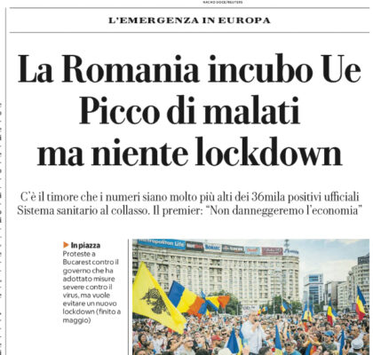 Repubblica: “La Romania, incubo Ue. Picco di malati ma niente lockdown”
