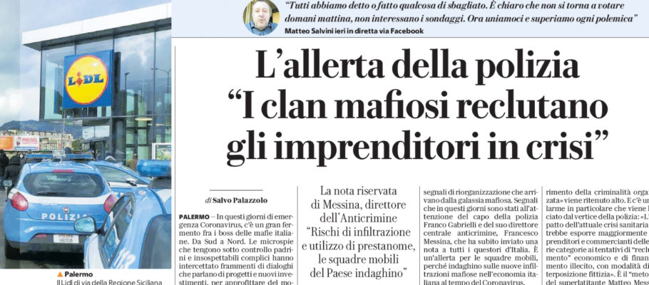 Repubblica: “L’allerta della polizia “I clan mafiosi reclutano gli imprenditori in crisi”