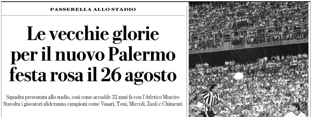 L’edizione odierna de “La Repubblica” mette in risalto la partita tra il nuovo Palermo e le vecchie glorie rosanero, che potrebbe andare in scena il 26 agosto. Sono in tanti quelli che hanno già detto sì alla proposta lanciata da Mirri, gente come Sorrentino, Miccoli, Toni, Zauli, Balzaretti, Zaccardo, Berti, Biava, Amauri, ma anche giocatori di una generazione precedente come Vasari, La Grotteria, Cappioli, Biffi. Gente del Palermo precedente al primo fallimento come Vito Chimenti o Gianpaolo Montesano e altri ancora che hanno vissuto l’amichevole contro l’Atletico Mineiro del 19 agosto 1987 come Santino Nuccio. In panchina ci sarà Pino Caramanno, mentre sono in corso dei contatti con Francesco Guidolin. Alla serata sono stati invitati anche Dybala, Belotti e Cavani. Tutta la storia del Palermo condensata in 90 minuti di festa e passione.