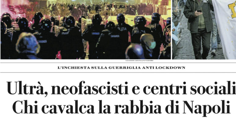 Repubblica: “L’inchiesta sulla guerriglia anti lockdown. Ultrà, neofascisti e centri sociali, chi cavalca la rabbia di Napoli”