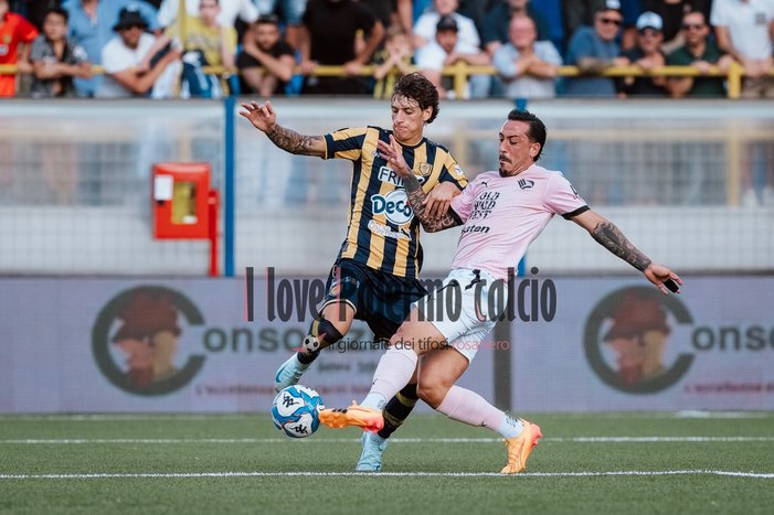 La Juve Stabia parte bene con un colpo di testa di Adorante, poi recriminazioni rosanero per un contatto in area tra Floriani Mussolini e Di Francesco, che per Di Bello, dopo revisione VAR, è regolare. I gialloblù spingono e colpiscono un clamoroso palo con Floriani su assist di Mosti.