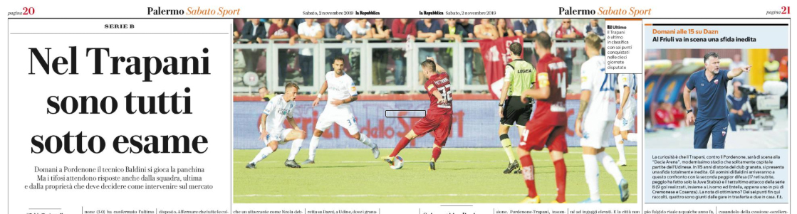 L’edizione odierna de “La Repubblica” ha analizzato l’attuale situazione in casa del Trapani. Come scrive il quotidiano, infatti, in casa granata sono tutti sotto esame. L’involuzione è così vistosa, che non ha neanche senso parlare di moduli, scelte tattiche e tecniche. Sorprende, però, che un attaccante come Nzola debba essere spedito in tribuna per aver ritardato ad un allenamento. Vista la penuria di attaccanti e di uomini pericolosi, il rimedio è sembrato peggiore del male, e magari si sarebbe potuto pensare di prendere altri provvedimenti, ma di non privarsi del suo contributo. Baldini resta appeso ad un filo, non è stato esonerato solo per la ristrettezza dei tempi dovuta al turno infrasettimanale. Ma ha influito anche la consapevolezza di possedere risorse economiche sufficienti per rispettare gli impegni già presi, ma non per assumerne di ulteriori. La coperta, però, è troppo corta: e illudersi che quattro o cinque innesti nel mercato di gennaio possano essere taumaturgici equivale a coltivare un’illusione.