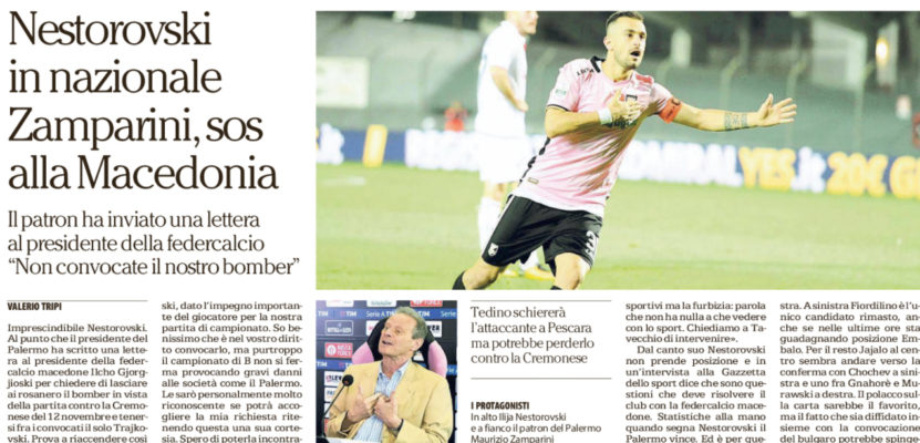 “Imprescindibile Nestorovski. Al punto che il presidente del Palermo ha scritto una lettera al presidente della federcalcio macedone Ilcho Gjorgjioski per chiedere di lasciare ai rosanero il bomber in vista della partita contro la Cremonese del 12 novembre e tenersi fra i convocati il solo Trajkovski. Prova a riaccendere così i riflettori sul caso dei nazionali il proprietario della società di viale del Fante Maurizio Zamparini.