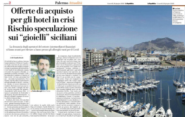 L’edizione odierna de “La Repubblica” si sofferma sul timore della speculazione nel settore degli hotel. Gli intermediari dei fondi di investimento stanno cercando di acquisire alberghi, soprattutto in Sicilia orientale. «Si sono presentati da me – racconta il proprietario, Nico Torrisi, che fra l’altro è il presidente di Federalberghi in Sicilia – e mi hanno chiesto se avessi intenzione di vendere. Ma il mio non è un caso isolato: sono molti i colleghi che hanno ricevuto proposte del genere». «Soprattutto nelle grosse città – rilancia il presidente di Federalberghi Ragusa, Rosario Dibennardo – a diversi colleghi è capitato di ricevere offerte di questo tipo». Villa Igiea: il simbolo dell’hotellerie palermitana è andato a un colosso come Rocco Forte, che però adesso è stato costretto a rimandare la riapertura alla primavera dell’anno prossimo. « Con 120 operai e le regole di distanziamento – specificano dall’azienda – è impossibile fare più in fretta» .