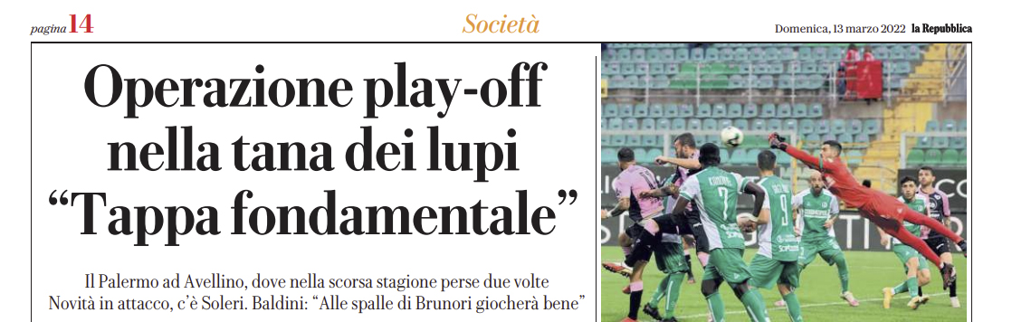 L’edizione odierna de “La Repubblica” si sofferma sulla sfida di oggi tra Avellino e Palermo attraverso le parole di Baldini.