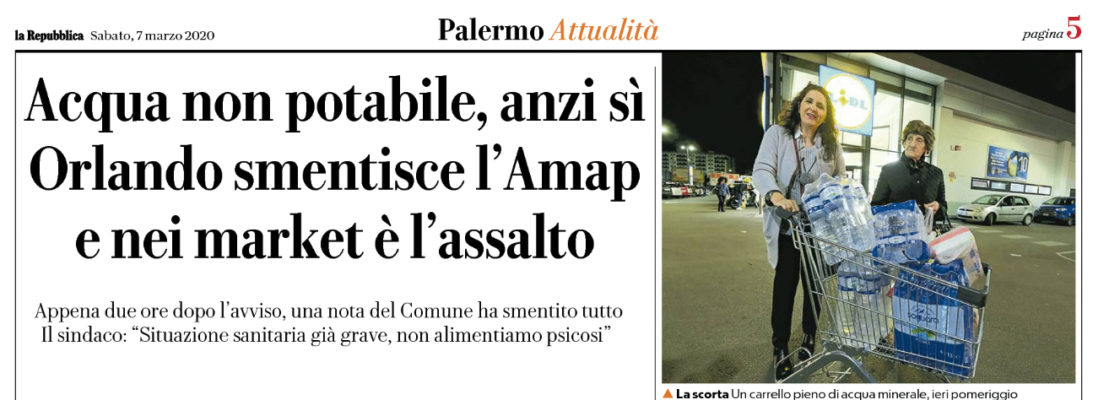 Repubblica: “Palermo. Acqua non potabile, anzi sì. Orlando smentisce l’Amap e nei market è assalto”