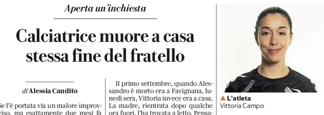 Repubblica: “Palermo. Aperta un’inchiesta: calciatrice muore a casa, stessa fine del fratello”