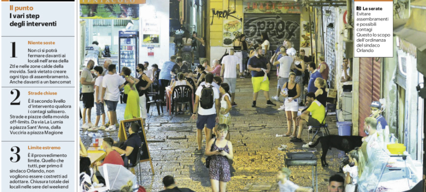 L’edizione odierna de “La Repubblica” si sofferma sulle misure anti-Covid 19 a Palermo. No al coprifuoco, sì ad un divieto di sosta per i pedoni in intere aree della città. Un provvedimento in vigore nel fine settimana dalle 21 alle 24.