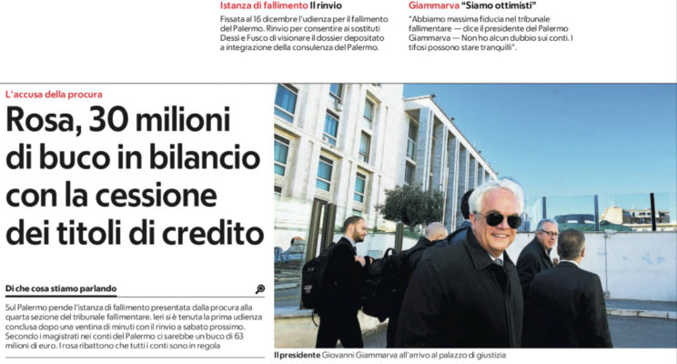 Repubblica: “Palermo, ecco l’accusa della procura: 30 milioni di buco in bilancio con la cessione dei titoli di credito. I dettagli”