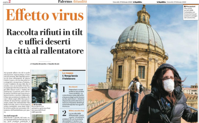 Repubblica: “Palermo, effetto virus. Raccolta rifiuti in tilt e uffici deserti, la città al rallentatore”