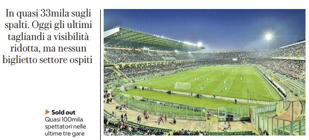 L’edizione odierna de “La Repubblica” si sofferma sul terzo sold-out di fila che ci sarà al “Renzo Barbera”.