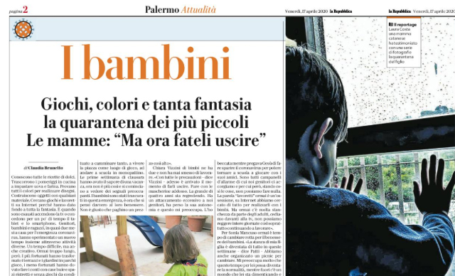 Repubblica: “Palermo. I bambini. Giochi, colori e tanta fantasia, la quarantena dei più piccoli. Le mamme: «Ma ora fateli uscire»”