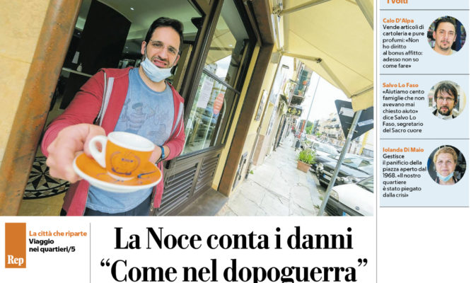 L’edizione odierna de “La Repubblica” si sofferma sulla situazione del quartiere Noce. Sembra un dopoguerra. «Ci lecchiamo le ferite e contiamo i danni» dice Iolanda Di Maio dalla porta del suo panificio. Salvo Lo Faso, il segretario del Sacro cuore e braccio destro di padre Salvatore spiega: «Distribuiamo la spesa una settimana sì e una no a un centinaio di persone che non erano mai venute a chiedere aiuto: ambulanti, lavoratori in nero, badanti». Tramuto, titolare di un negozio di ricambi per moto, spiega l’esistenza di una rete sotterranea di negozianti: “Io ti do una batteria, tu mi dai un catenaccio”. La Noce si dimostra solidale.